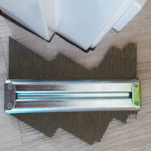 Met de profielaftaster kopieert u de randen van, bijvoorbeeld, kozijnen naar uw vloerdeel en tekent u de contouren over.