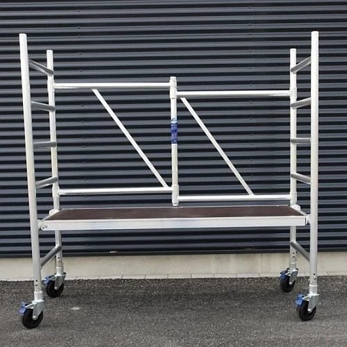Een kamersteiger is een simpel op te stellen steiger bedoeld voor binnengebruik op vlakke vloeren.