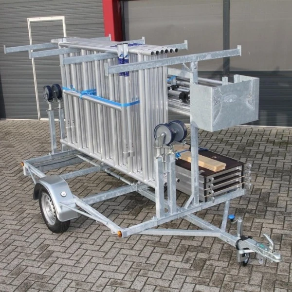 Let op: De aanhanger is alleen te huur voor een dagdeel en in combinatie met een van onze steigers.
