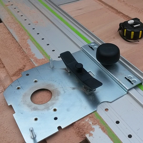 - Met het geleidesysteem groeven in de achterwand of lijsten aanbrengen