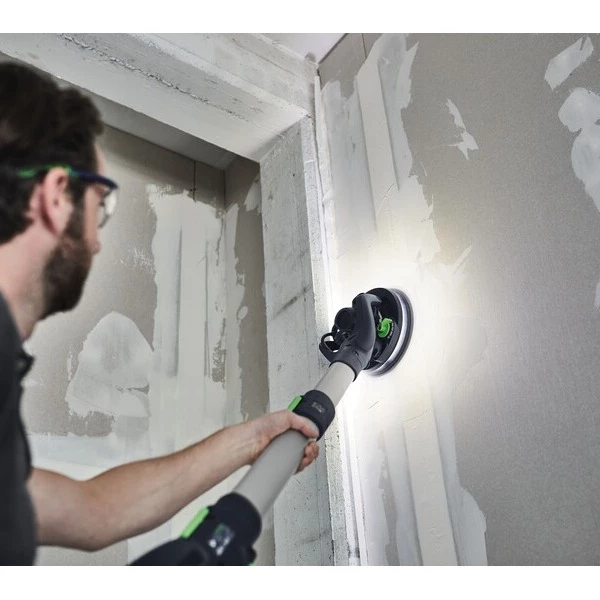 De nieuwe generatie langnek-schuurmachines PLANEX verandert de droogbouw totaal – met LED-licht en excenterbeweging. De LED-lichtring rondom werkt als een ingebouwd controlelicht en legt al tijdens het schuren oneffenheden bloot. De excentrische schuurbeweging zorgt daarbij voor een uitstekende oppervlakkwaliteit – geheel zonder kostbare nabewerking. Voor ergonomisch werken aan wand en plafond zorgen de regelbare aanzuiging, de variabele werklengte en de slimme T-handgreep – voor een lichte geleiding, ook bij een lange gebruiksduur.
